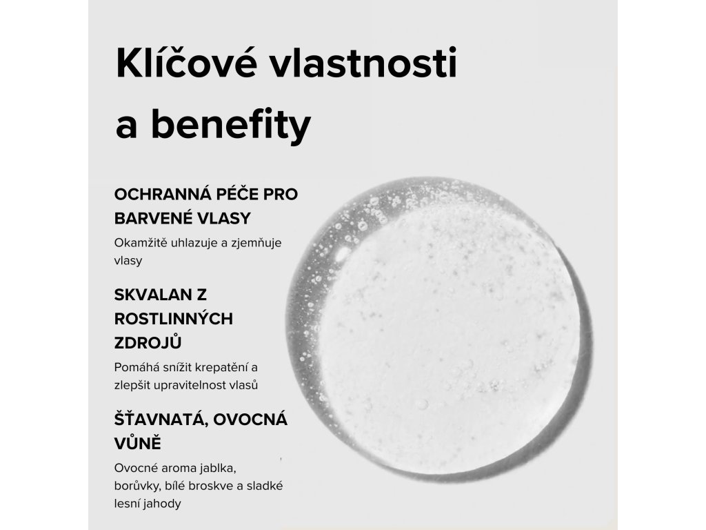 Dodejte okamžitou hebkost s jediným použitím. Uzavírá kutikulu a dodává nádherný lesk. S obsahem rostlinného skvalanu pro doplnění vlhkosti a kontrolu frizzu.