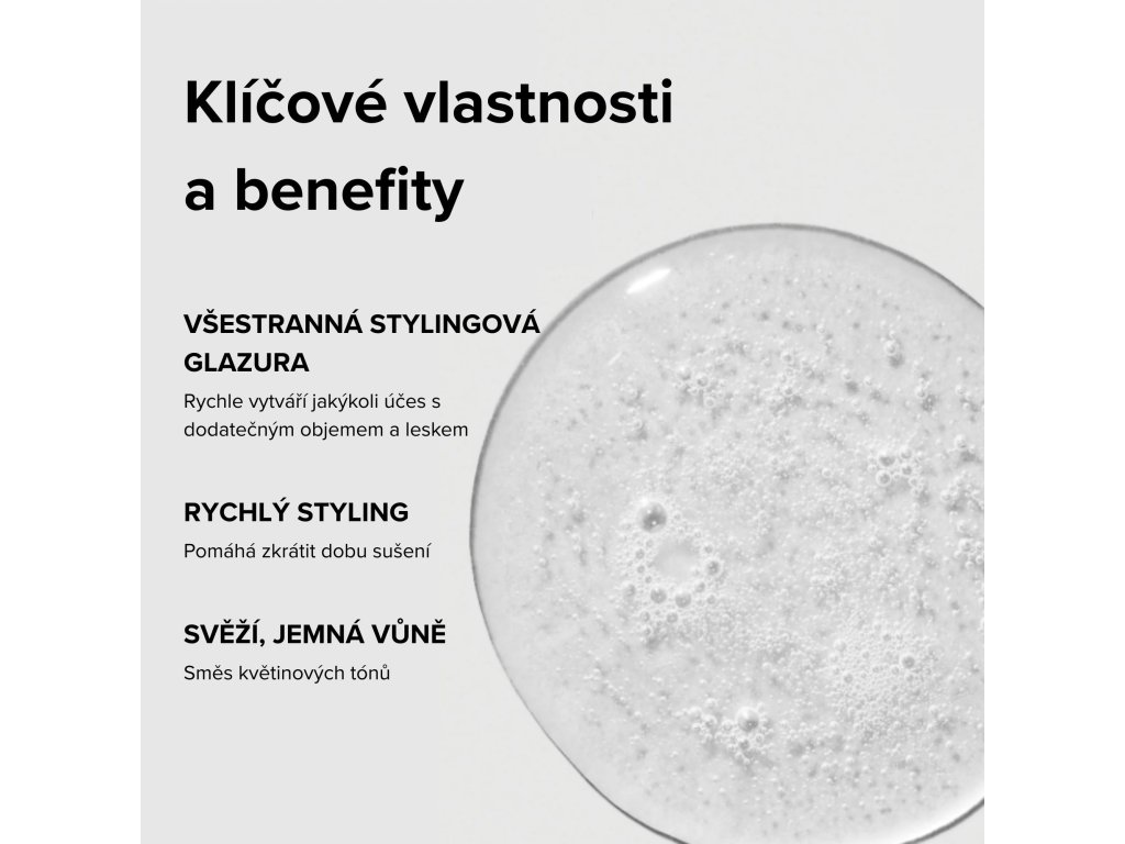 Rychleschnoucí stylingová glazura ideální pro všechny typy vlasů, která umožňuje vytvořit účesy rychle a snadno. Poskytuje pružnou fixaci, dlouhotrvající paměť účesu a zároveň dodává vlasům objem a maximální lesk. Lehká textura rychle schne, takže dosáhnete požadovaného výsledku během kratší doby. Produkt voní svěže, s jemnou