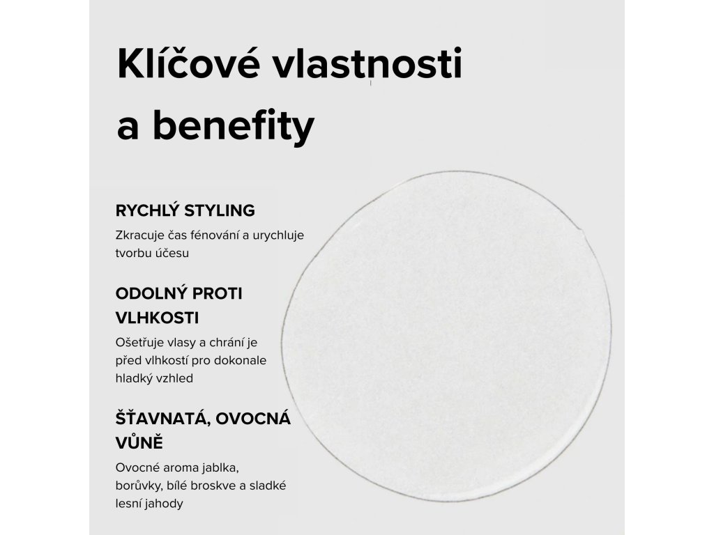 Vysoce koncentrované stylingové sérum s účinkem proti frizzu. Dodává vlasům hebkost a lesk. Pomáhá kontrolovat frizz, odolává vlhkosti, chrání před teplem a zkracuje dobu schnutí.