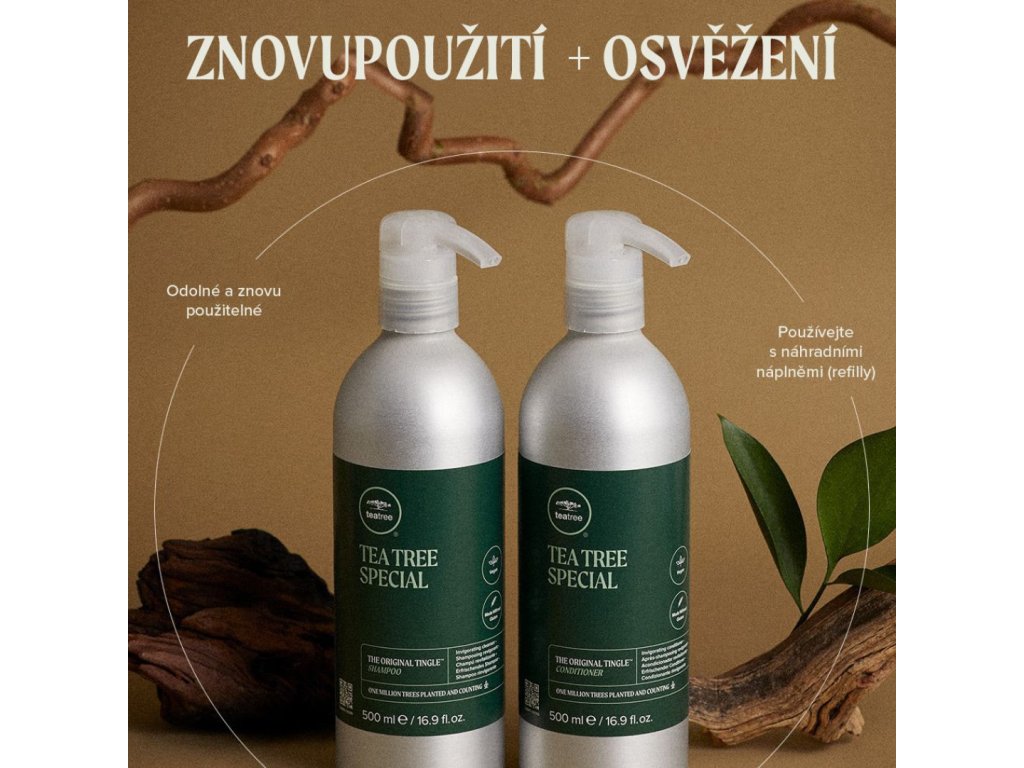 OPAKOVANĚ POUŽITELNÁ LÁHEV. Perfektní doplněk k Tea Tree Special Conditioner® náhradním obalům. Při zakoupení je hliníková lahvička naplněna 500 ml kondicionéru. Cena vč. náplně.